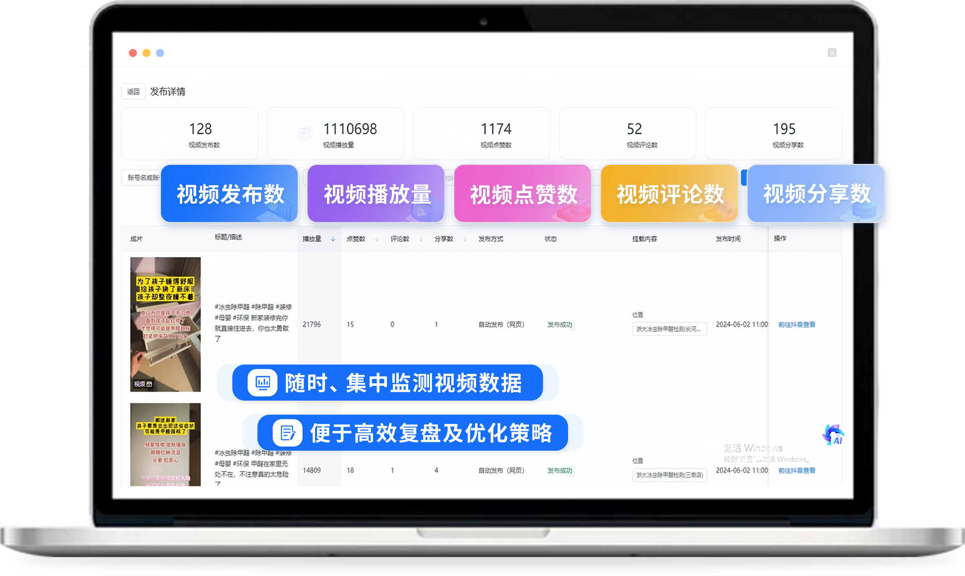 著名汽车品牌在618活动前,用销冠兽智能剪辑近千条视频,通过916个经销商账号批量发布,助力24小时狂欢直播,为广大客户带来限时购车福利。